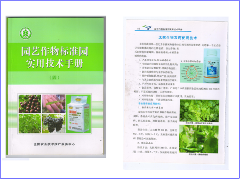 自2012年取得三證后正式推向市場以來,由于安全可靠效果好,太抗生物農藥能夠在供給側為健康生活提供基礎,奠立了太抗在生物農藥行業(yè)領軍前行的良好格局。由于產品推廣示范應用的良好效果,太抗生物農藥入選農業(yè)部關于印發(fā)《農企合作共建示范基地深入推進<到2020年農藥用量零增長行動實施方案計劃>實施方案》(農農【2015】61號),被全國農業(yè)技術推廣服務中心編入《園藝作物標準園使用技術手冊》,也被成都市植物檢疫站編入《成都市生物農藥應用手冊》中第一個推薦使用的生物農藥。
